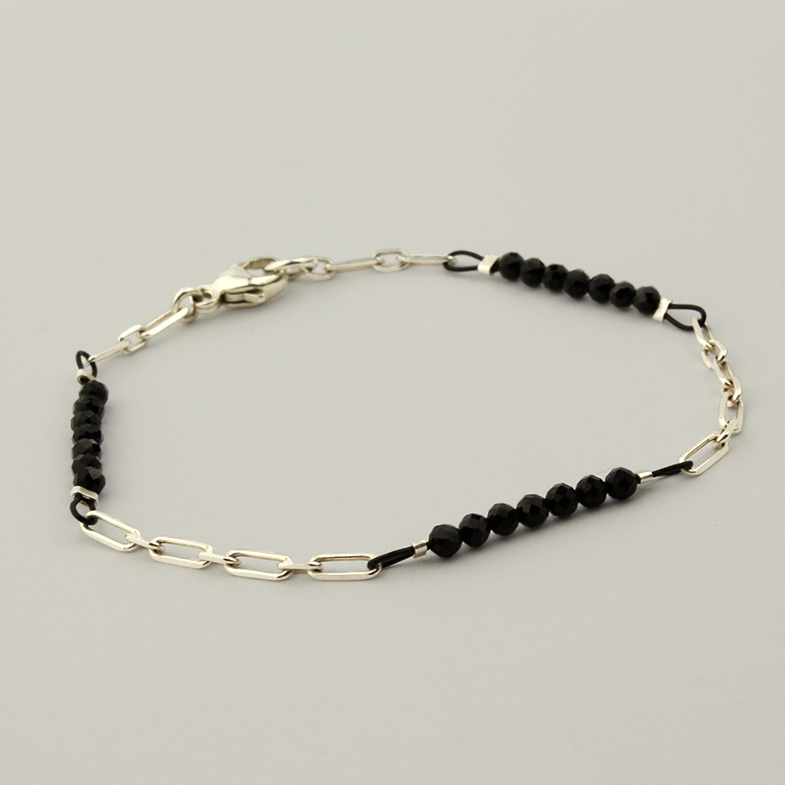 Pictured: Polished sterling silver accented with Black Spinel gemstone beads