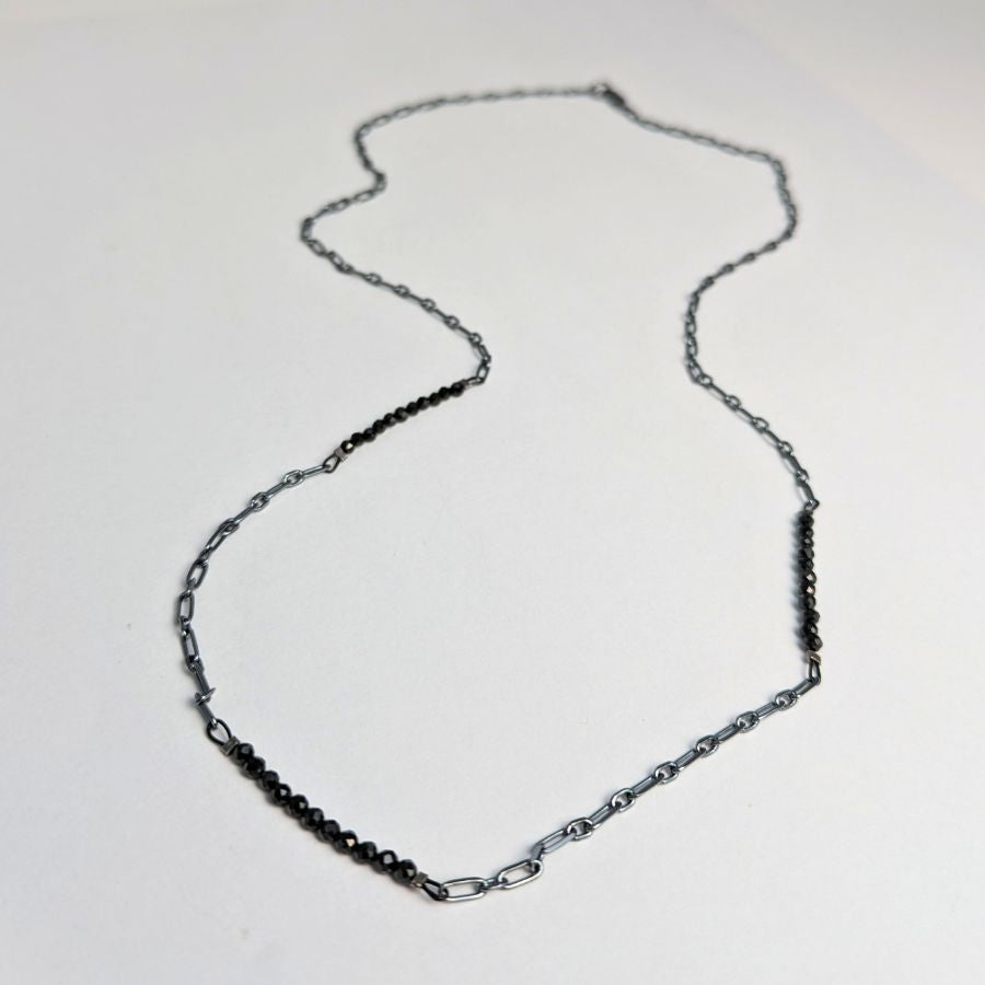 Accented Chain Necklace: Oxidized Sterling Silver and Black Spinel