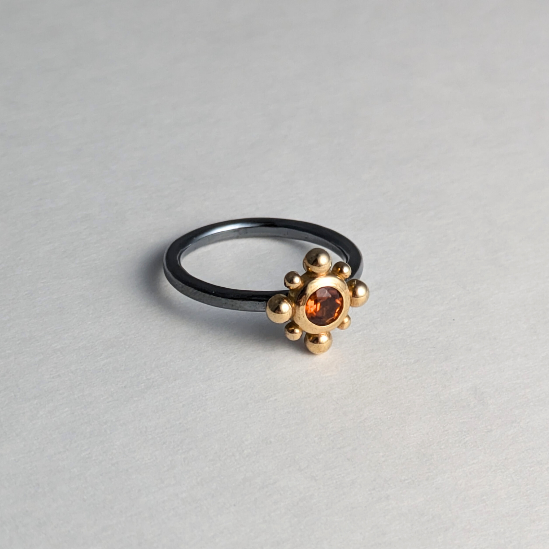 Ready to Ship: Bezel Ball Ring in polished 14k yellow gold and oxidized sterling silver