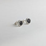These studs feature crushed black jet stone inlaid into these polished sterling silver stud earrings. They are great for ever day wear and comfortable too!