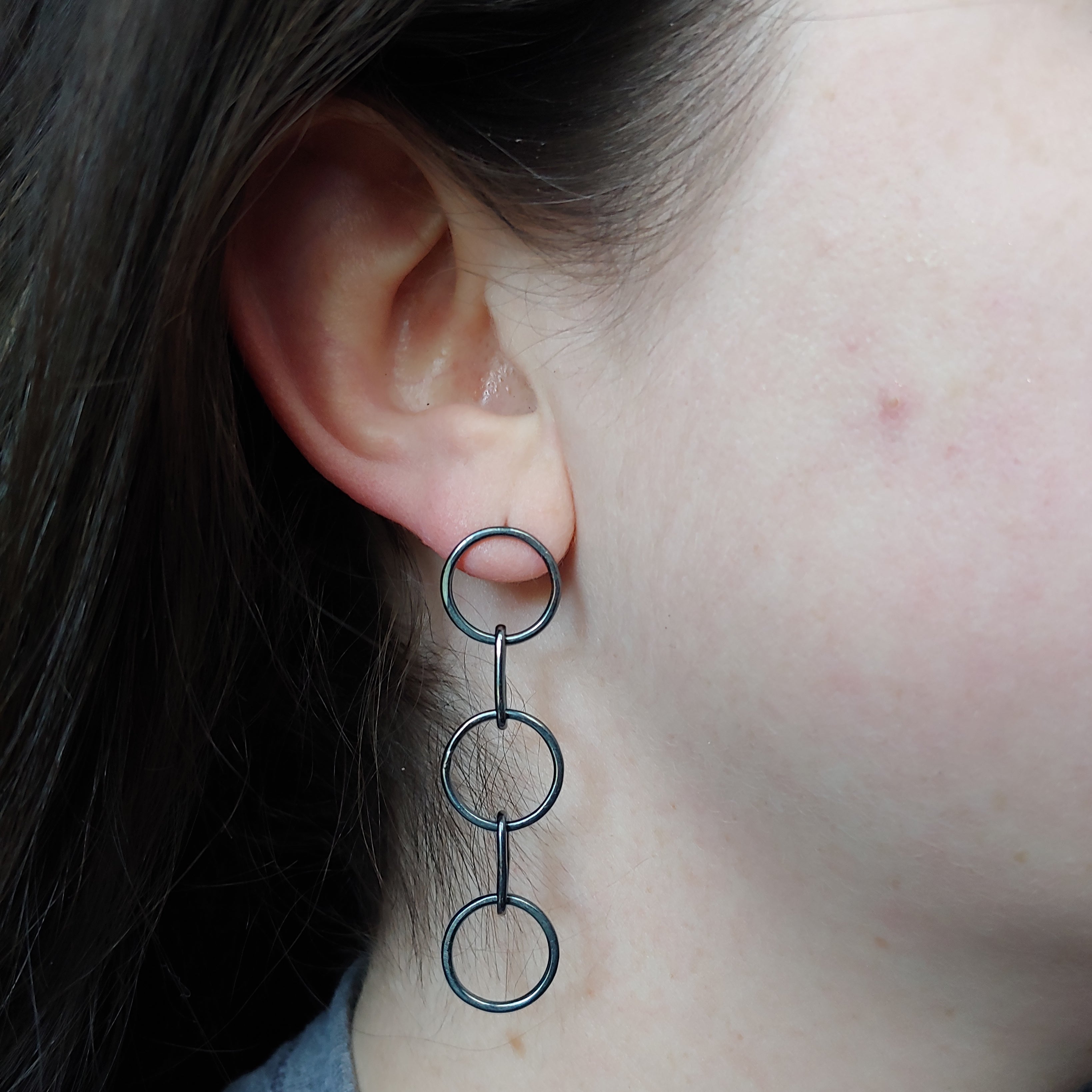 Earring Dimensions: Double- 1 3/8 inch length, 1/2 inch width, Triple- 3 1/8 inch length, 1/2 inch width