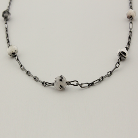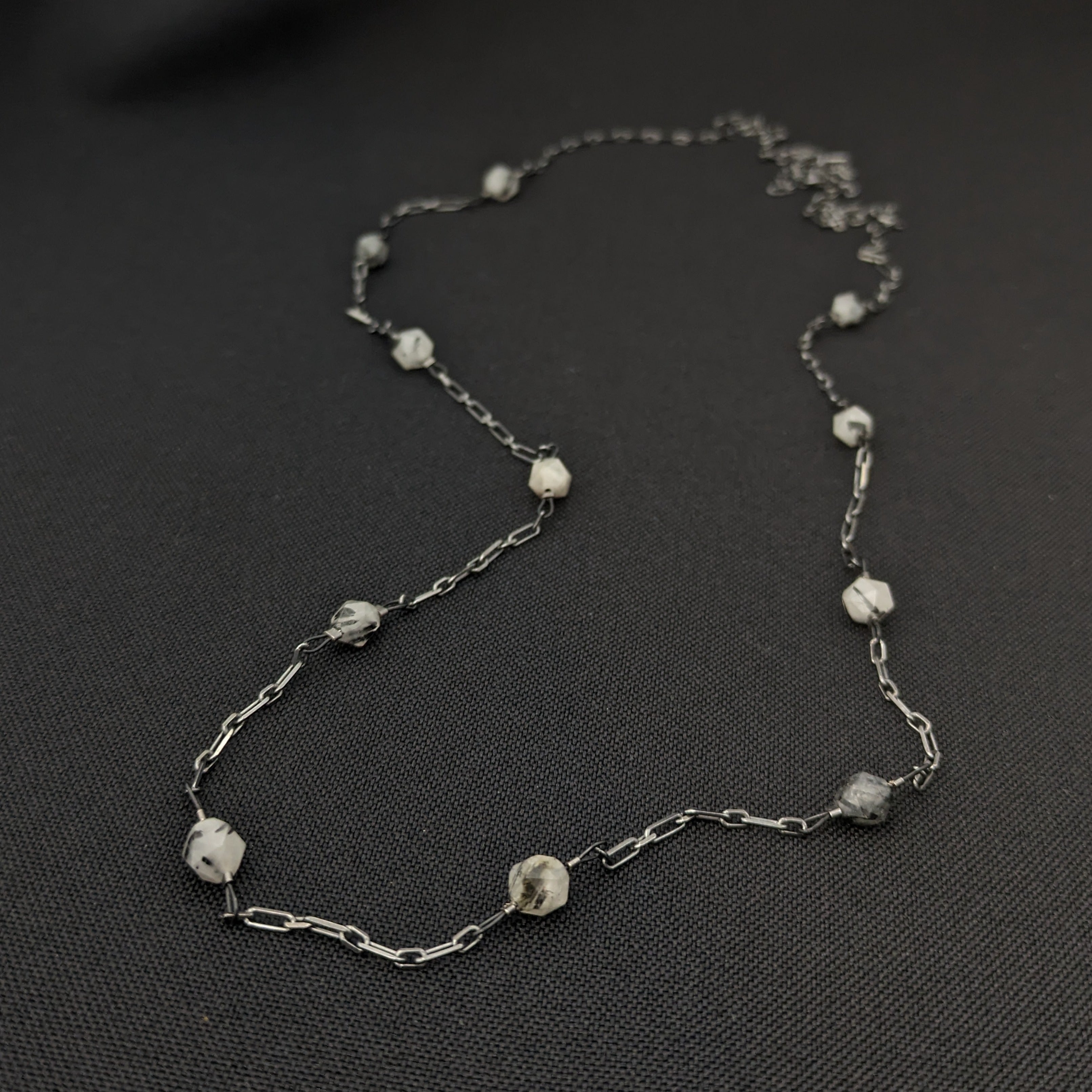 Extra Long Quartz Station Chain: Oxidized Sterling Silver