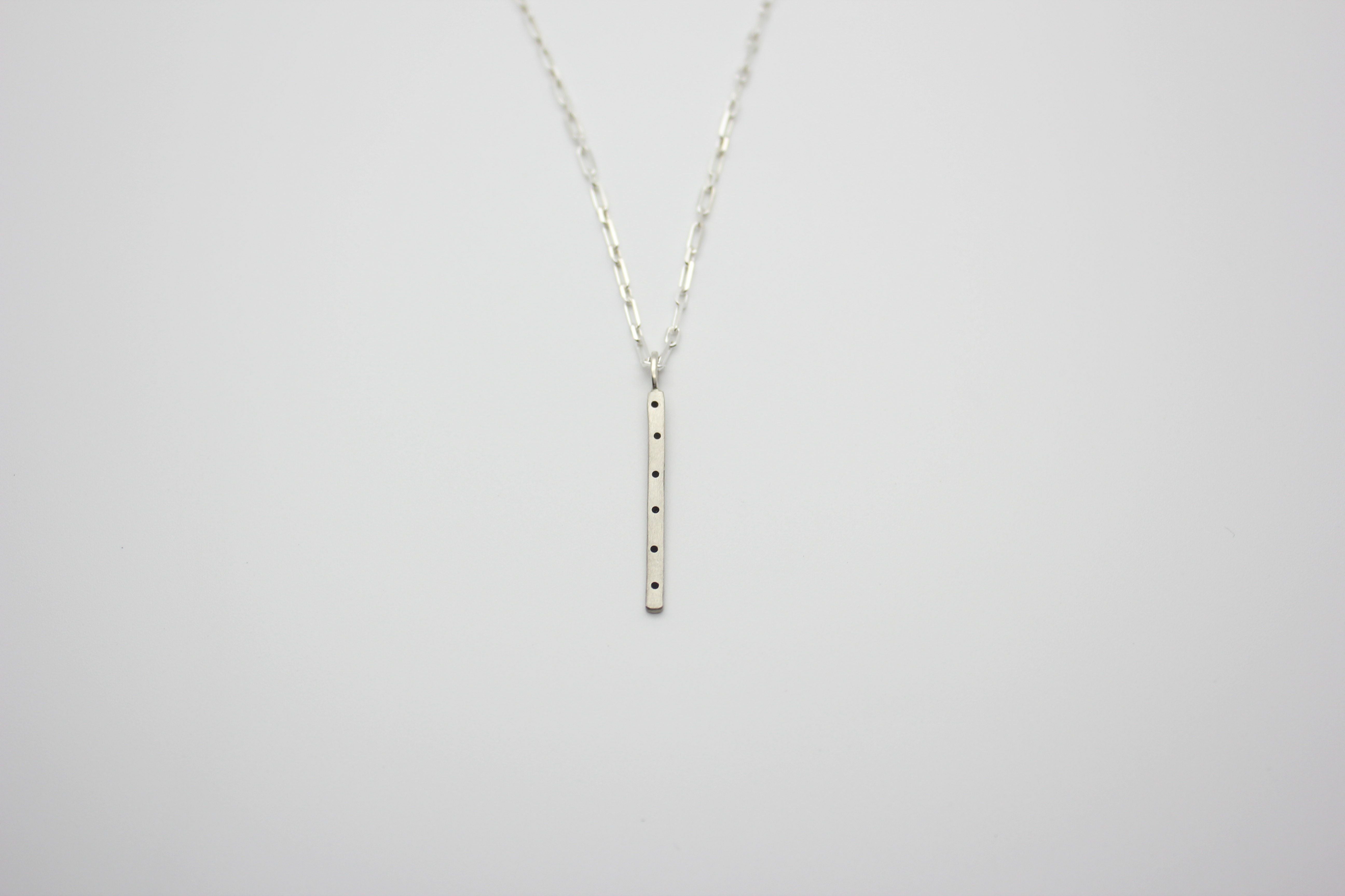 The stick pendant is a great accent your look. I like to layer this necklace with our one of our single charm necklaces. I keep the stick pendant long in chain length to elongate my torso and the charm necklace near the base of my neck.