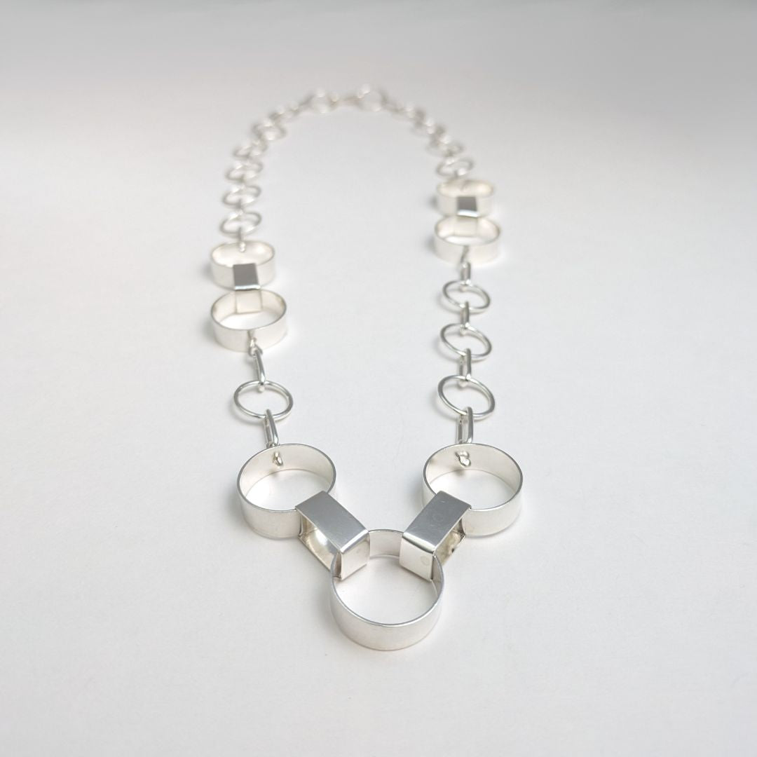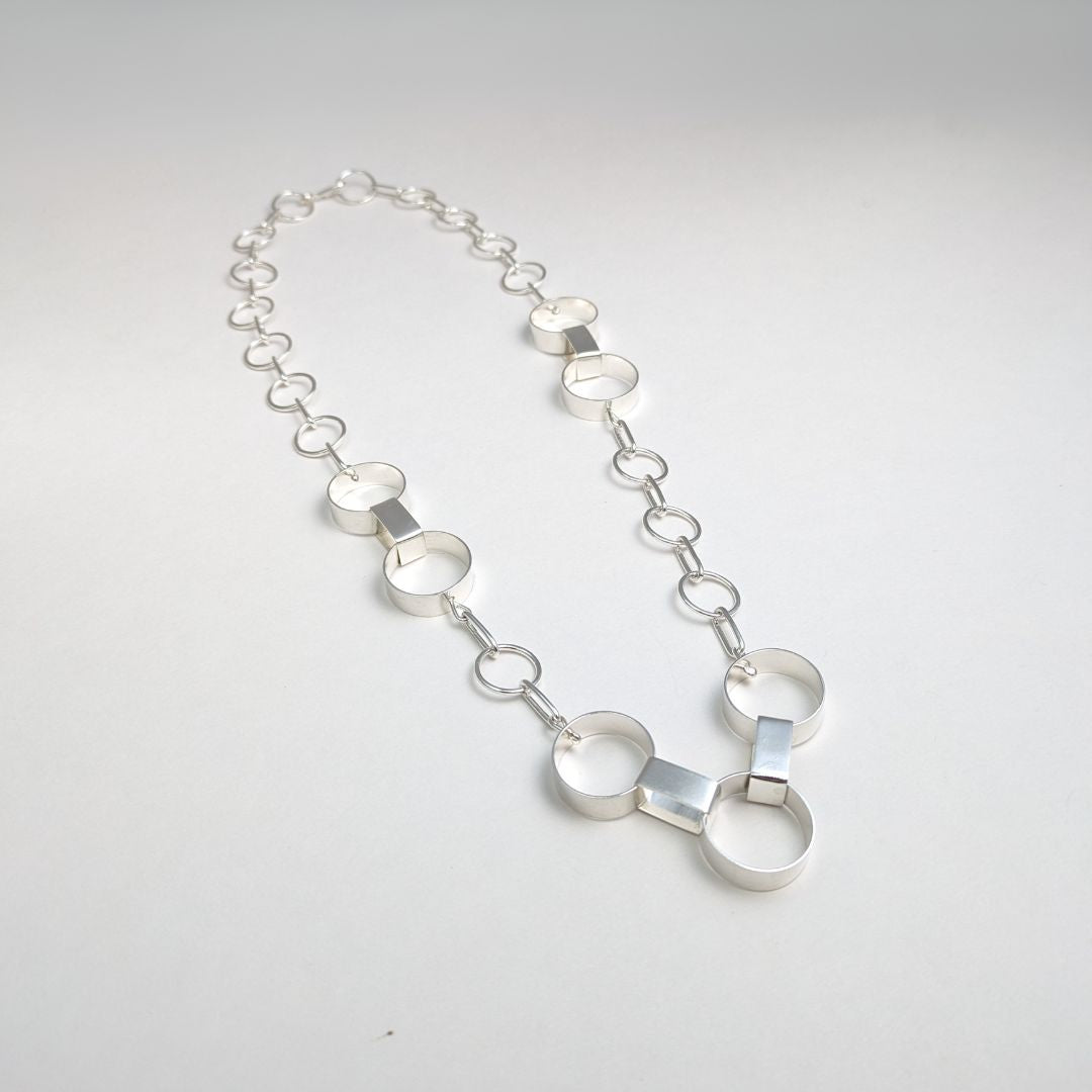 This chain necklace combines the links from my circle chain necklace and new garland chain to create a bold statement for the wearer. The necklace is lightweight and made from solid sterling silver. Each link is hand-formed, soldered and the necklace is finished with a hand crafted s hook clasp.