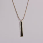 Chain Length: 18 inches. If another chain length, inlay material, or metal finish is desired, check out our Rectangle Inlay Pendant through our Shop.