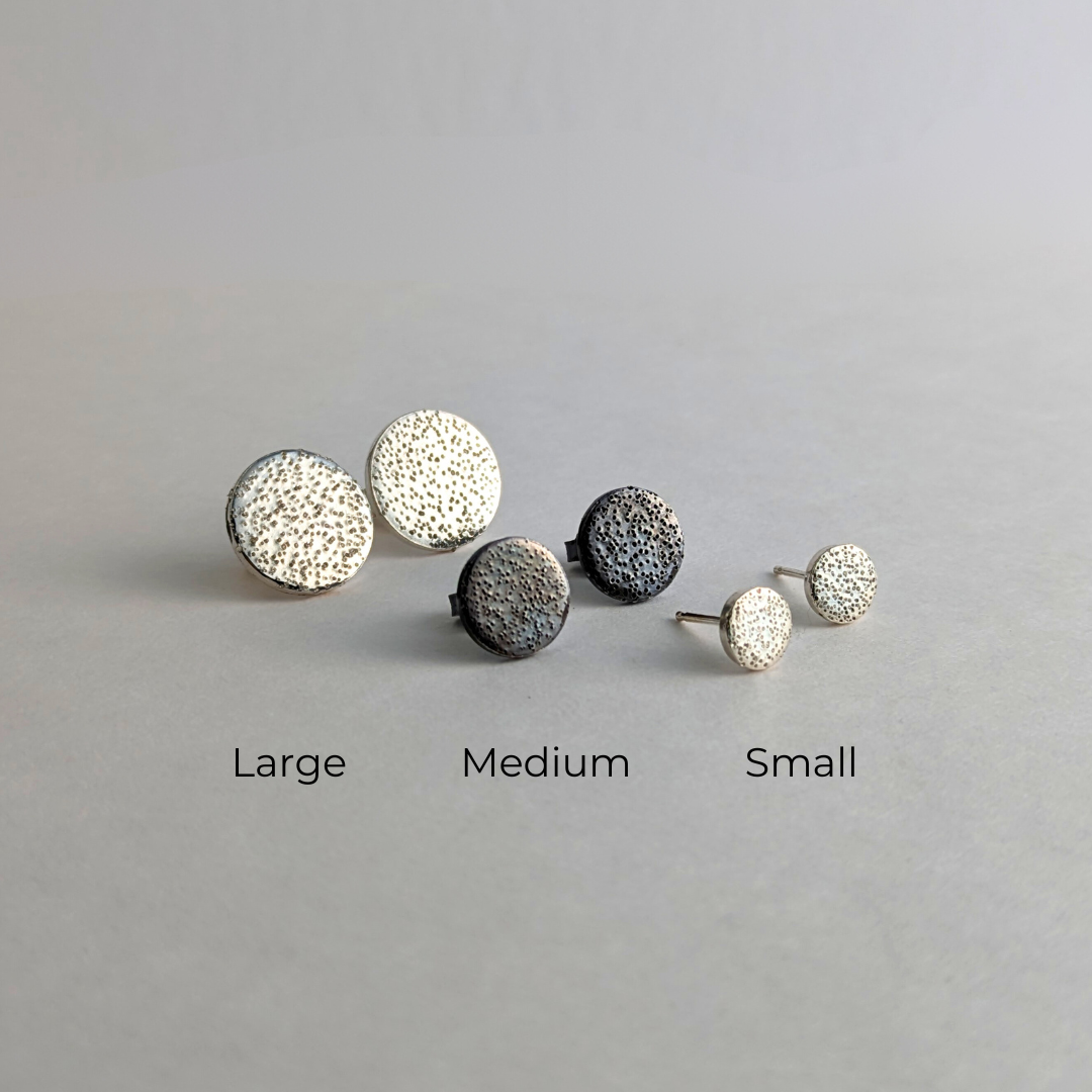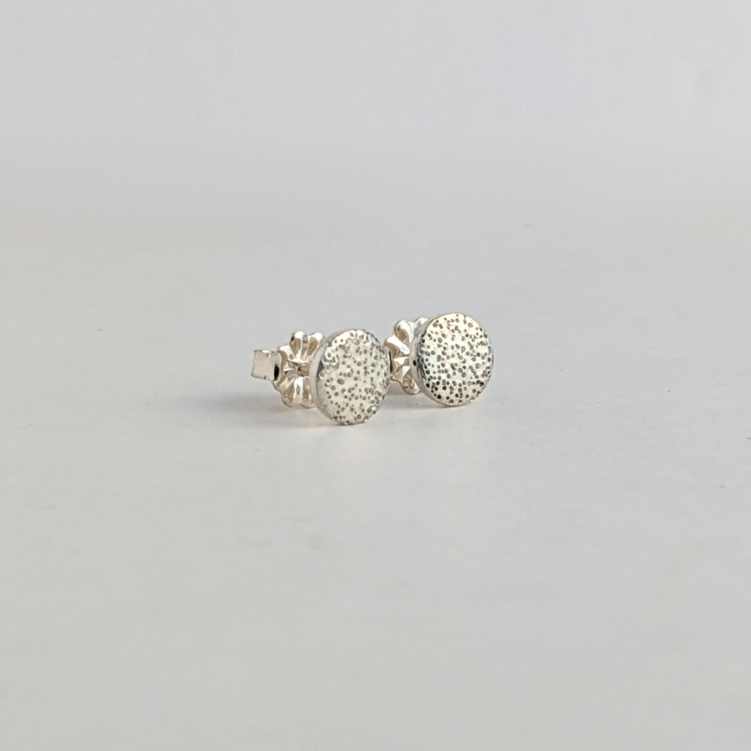 Ready to Ship: Speckled Studs, small in polished sterling silver. If another size or metal finish is desired, please check out our Speckled Studs through the shop.