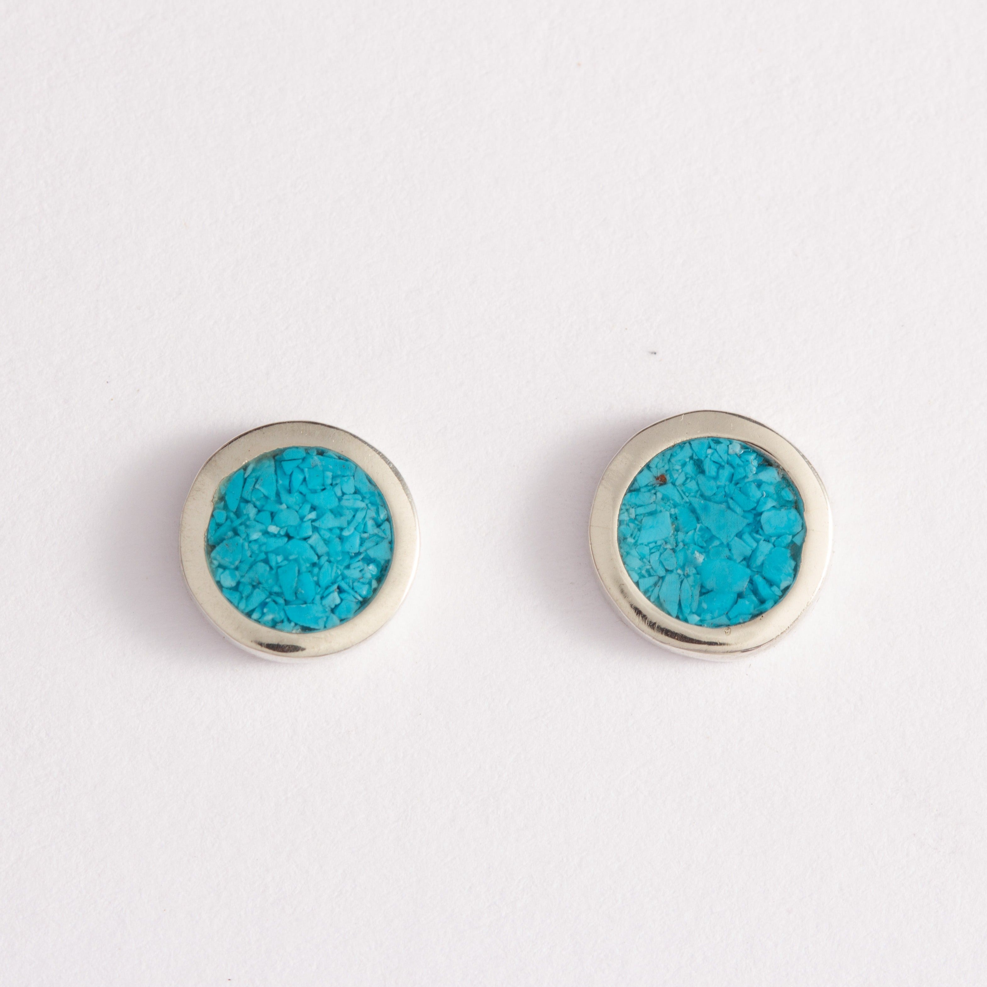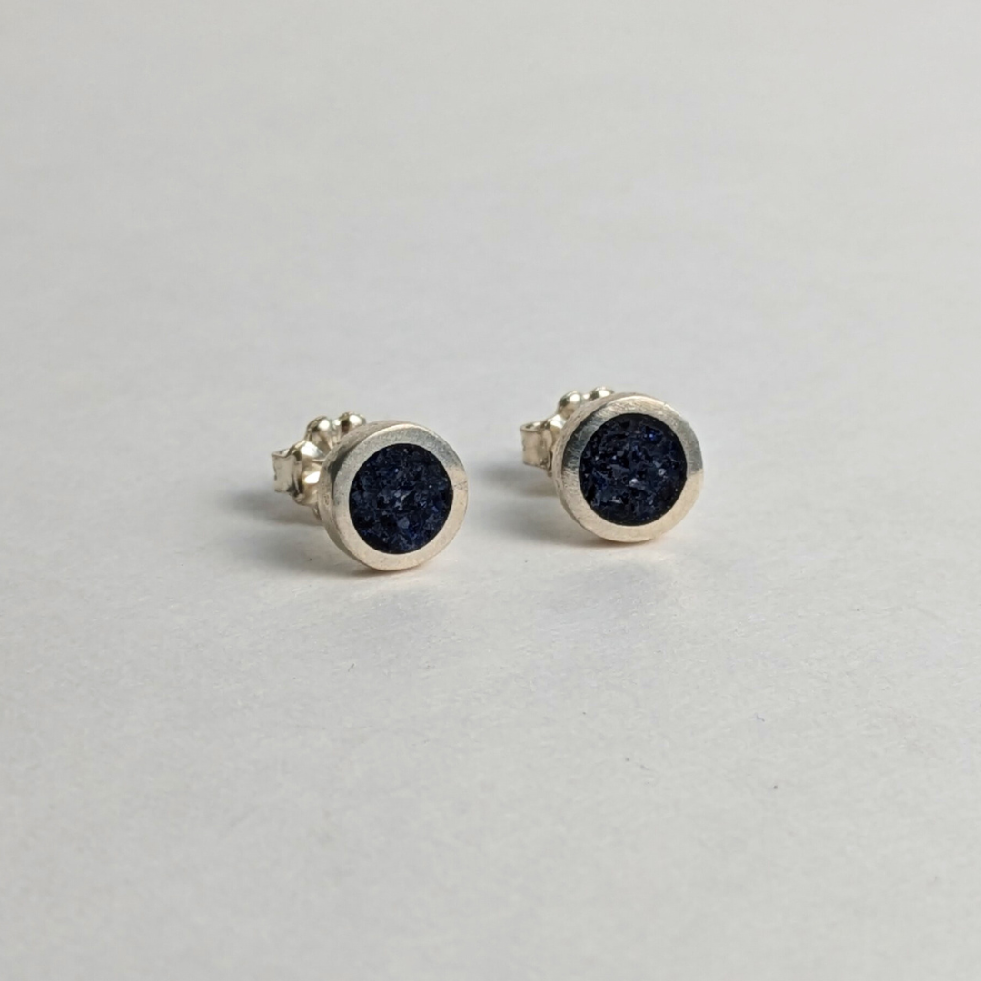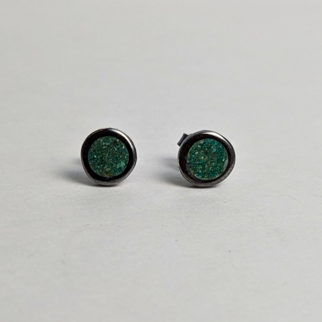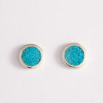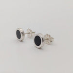 Our classic studs feature Pink Rhodonite, Jet black stone or Mother-of-pearl inlay set in sterling silver, brushed sterling silver, or oxidized sterling silver.