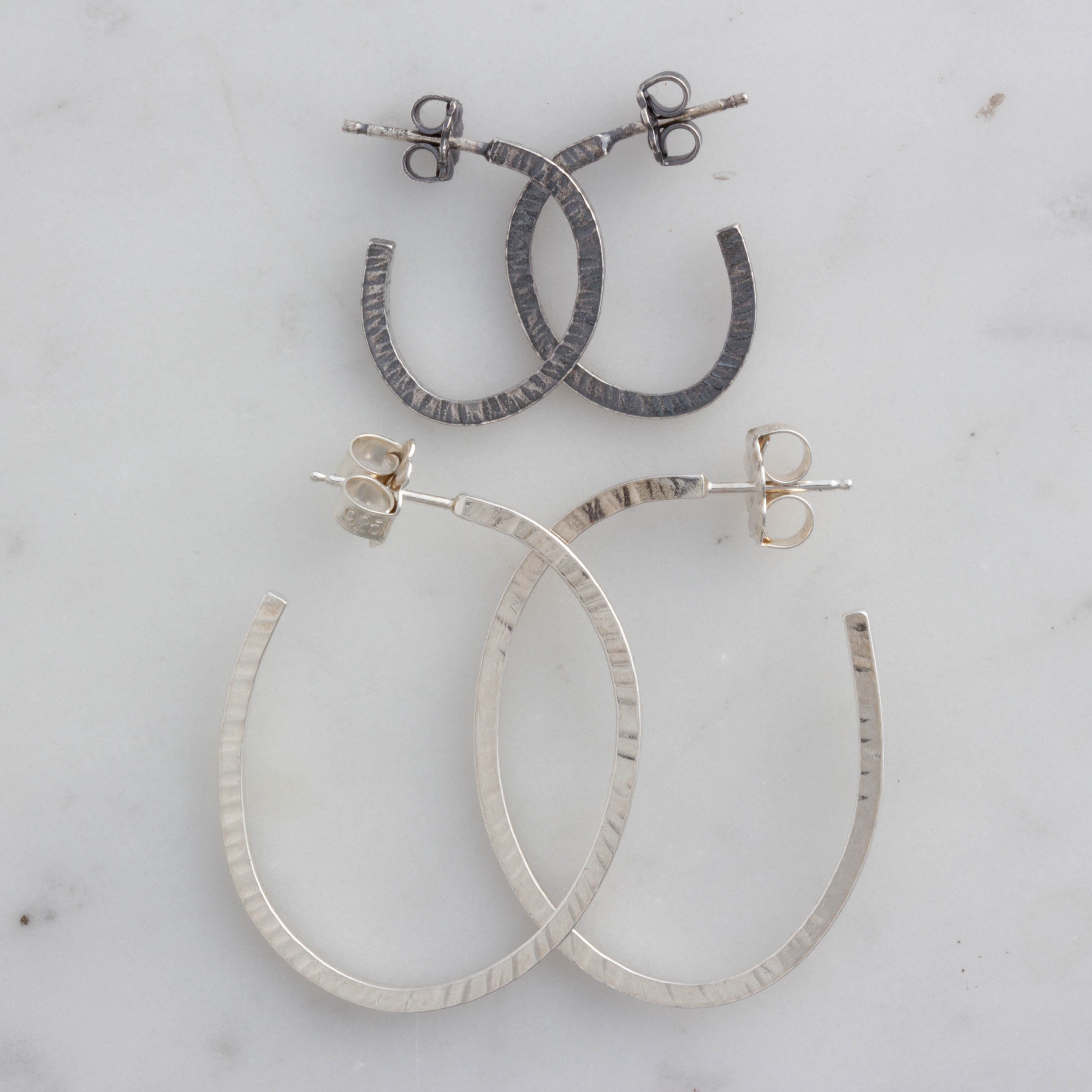 These hoops are crafted from sterling silver and finished with a hammer textured exterior, creating a fashionable look that won’t weigh you down. Light and comfortable, it’s the ideal piece for effortless everyday wear.